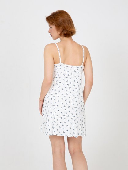 Оптовая продажа. Сорочка женская из гладкокрашеного трикотажного вискозного полотна, прямая, прилегающего силуэта, укороченная, на тонких нерегулируемых бретелях, без рукавов. Перед с лифом, образующий V-образный вырез горловины, декорированный кружевной тесьмой. Ночная сорочка отлично подойдет для сна и в качестве одежды для дома, подарка на любой праздник. Преимуществом данного материала является то, что вискоза не электризуется, она легкая и струящаяся. Данная модель дарит свободу движения, не перетягивает и не доставляет дискомфорта.