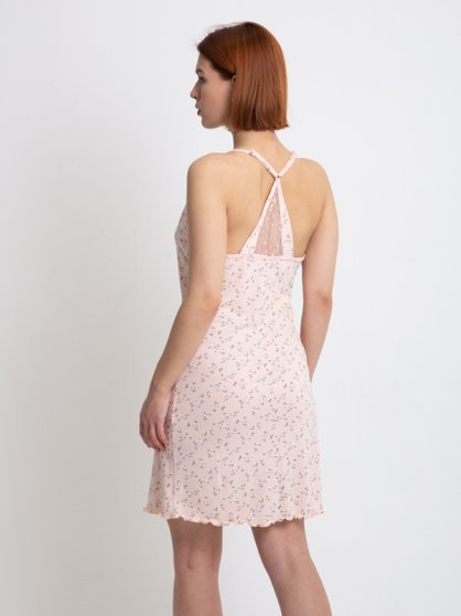Оптовая продажа. Сорочка из вискозного полотна, облегающего силуэта, длиной до колена, на узких бретелях, с отделкой из кружева.