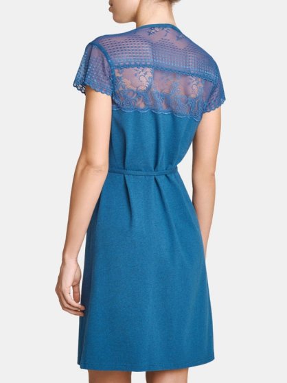 Оптовая продажа. Халат женский с короткими рукавами, на поясе, верхняя часть изделия кружевная.