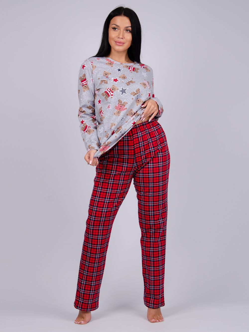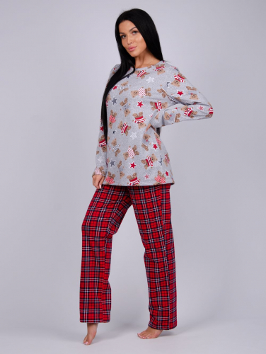 Эта теплая пижама женская с брюками отличный выбор для уютных вечеров и сна. Она выполнена из мягкого натурального хлопка, который гарантирует комфорт и тепло в холодное время года. Благодаря умеренной плотности ткани, пижама женская подходит как для домашнего отдыха, так и для спокойных ночей и стильной пижамной вечеринки. Цвет: серый; Материал: футер 2-х нитка с начесом;футер 2-х нитка с начесом; Состав: 100% хлопок.