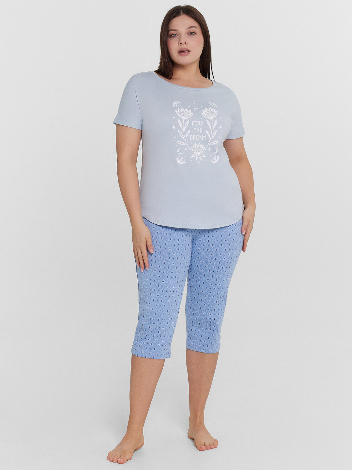 Женская пижама из высококачественного хлопка — это идеальное сочетание комфорта и стиля. Джемпер прямого и свободного кроя с круглым вырезом и короткими рукавами обеспечивает непринужденность и уют. Бриджи длиной ниже колена с классической линией талии и боковыми карманами завершают комплект, предлагая практичность и удобство. Эта пижама выполнена из хлопковой кулирки — мягкого и легкого материала с гладкой поверхностью, который обеспечивает отличную воздухопроницаемость и комфорт. Натуральный материал хорошо держит форму и не теряет цвет даже после множества стирок, делая пижаму долговечной и приятной к телу. Пижама Mark Formelle создаст яркий, стильный и неповторимый образ, в котором вы будете выглядеть потрясающе в домашней обстановке. Удобный крой и деликатные швы изделия обеспечивают полную свободу движений, делая ваш домашний отдых еще более комфортным.