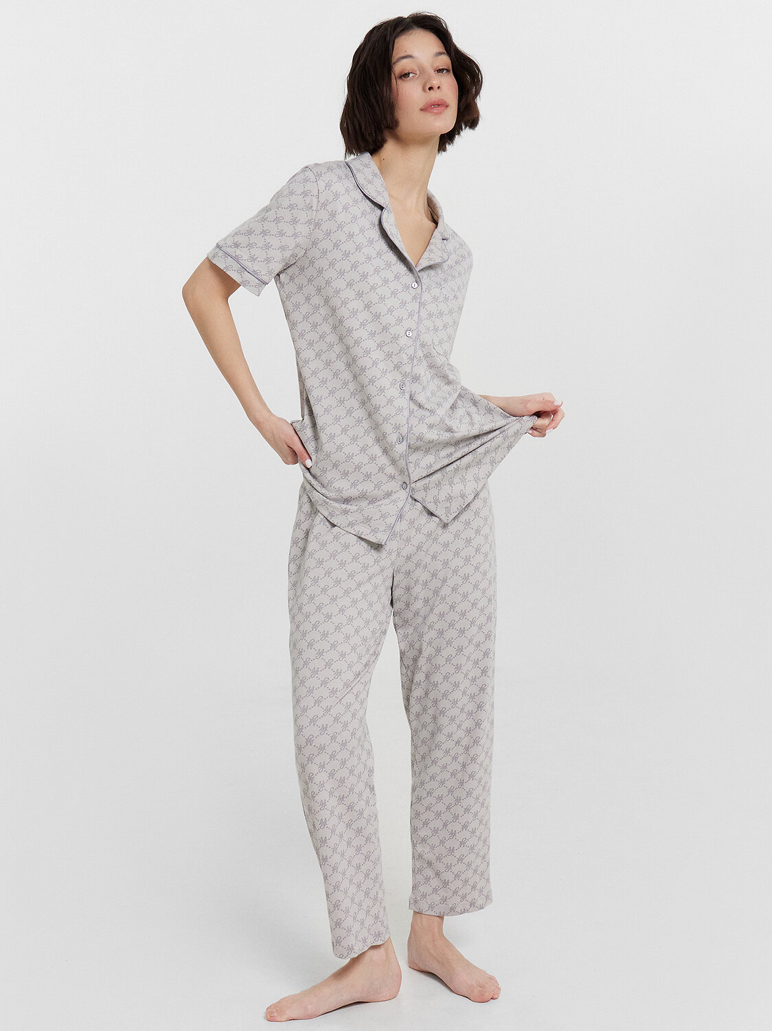 Этот женский домашний комплект — идеальное сочетание комфорта и элегантного дизайна! Рубашка прямого силуэта с отложным воротником, дополненным аккуратным кантом по краю воротника, который добавляет изысканный акцент. Накладной карман на груди делает модель функциональной, а короткие рукава обеспечивают удобную посадку. Центральная застежка с петлями и пуговицами позволяет легко регулировать посадку, а низ рубашки застрочен в подгибку для аккуратного финишного вида. Бриджи свободного силуэта с эластичной талией создают комфортную посадку, мягко адаптируясь к фигуре. Нижние края обработаны швом вподгибку, что гарантирует долговечность и эстетичность изделия. Комплект выполнен из хлопковой кулирки — мягкого, воздухопроницаемого материала, который приятно прилегает к коже и обеспечивает комфорт на весь день. Отличный вариант для отдыха дома, легких вечерних прогулок или уютных моментов! Этот комплект сочетает в себе стиль, удобство и качественные материалы, создавая безупречный образ для повседневного комфорта.
