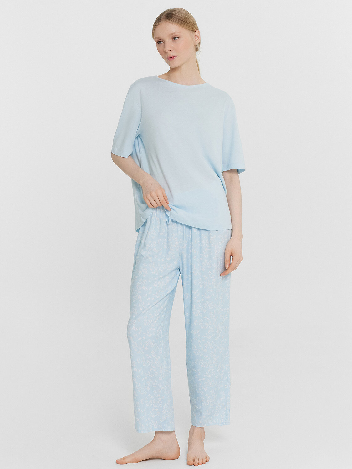 Стильная женская пижама с бриджами прямого кроя и футболкой, выполненная из нежной вискозы и модала, станет отличным выбором для сна и домашнего отдыха. Красивый насыщенный цвет и оригинальный принт делают её интересной и привлекательной. Такая модель отлично подходит как для сна, так и для домашних дел и отдыха. Мягкий и эластичный материал гипоаллергенен, что делает её подходящей для нежной кожи. Этот домашний комплект станет приятным подарком на праздники или просто без повода. Удобство и стиль, сочетающиеся в этом комплекте, делают его отличным выбором для домашнего гардероба!