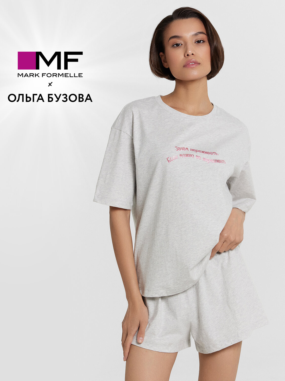 Женский домашний комплект — это гармоничное сочетание удобства и расслабленного стиля! Футболка свободного силуэта с круглой горловиной и слегка спущенной линией плеча создает уютный и непринужденный образ. Свободные короткие рукава и обработка нижних краев швом вподгибку придают аккуратность и обеспечивают комфорт. Шорты свободного кроя с эластичным поясом гарантируют удобную посадку и свободу движений. Нижний край шорт обработан швом вподгибку, что подчеркивает практичность и долговечность изделия. Пижама выполнена из мягкого и приятного материала, идеально подходящего для домашнего гардероба. Рекомендуем!