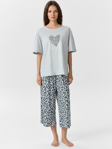 Женский домашний комплект — воплощение уюта и ненавязчивого стиля, созданного для максимального комфорта в течение дня. Свободная футболка с круглой горловиной и мягкими спущенными плечами дарит ощущение легкости и свободы, а просторные рукава обеспечивают удобство при любом движении. Обработка нижнего края и рукавов в подгибку сохраняет аккуратность и форму изделия после многократных стирок. Брюки также выполнены в свободном силуэте, что обеспечивает комфортную посадку и не сковывает движений. Эластичный пояс мягко фиксирует изделие на талии, подстраиваясь под индивидуальные особенности фигуры, а низ брюк, аккуратно обработанный швом в подгибку, завершает общий образ. Изготовленный из натуральной хлопковой кулирки, комплект отличается мягкостью, прочностью и отличной воздухопроницаемостью — идеальный выбор для домашнего отдыха, сна или неспешного утра. Эта модель легко вписывается в повседневный ритм и становится любимым элементом домашнего гардероба.