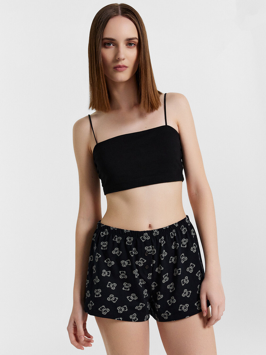 Женские домашние шорты — это комфорт и стиль для уютных дней дома. Модель прилегающего силуэта отличается аккуратной посадкой, подчёркивая линии фигуры. Короткая длина добавляет легкости, а эластичный пояс обеспечивает удобство и свободу движений. Декоративный гульфик с пуговицами по центру придает изделию оригинальность и уникальный акцент. Нижний край обработан швом вподгибку, гарантируя долговечность и аккуратный вид. Легкая хлопковая кулирка, из которой выполнены шорты, делает изделие приятным к телу, идеально подходящим для домашнего гардероба. Для создания стильного и завершенного образа их можно дополнить топом, гармонирующим по цвету и фасону. Прекрасный выбор для комфортного отдыха в любое время года!