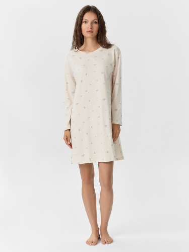 Ночная сорочка из великолепного хлопкового полотна. Силуэт свободный, длина до колена. Короткие рукава, круглый вырез горловины, разрезы по бокам. Привлекательная и уютная модель