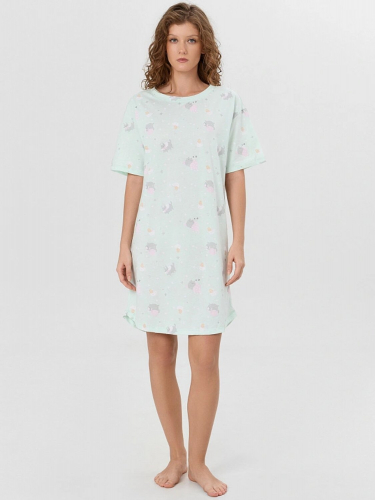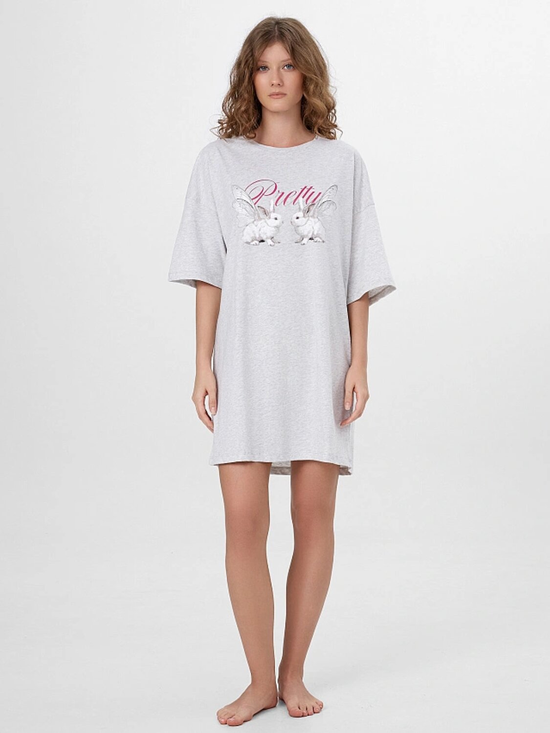 Короткие рукава со спущенным плечом и круглый вырез горловины обеспечивают комфорт и легкость. Длина выше колен позволяет чувствовать себя непринужденно во время домашних дел, отдыха или сна. Мягкий дышащий материал и деликатные швы, которые абсолютно не ощущаются на коже, делают эту тунику идеальной для всего дня.
