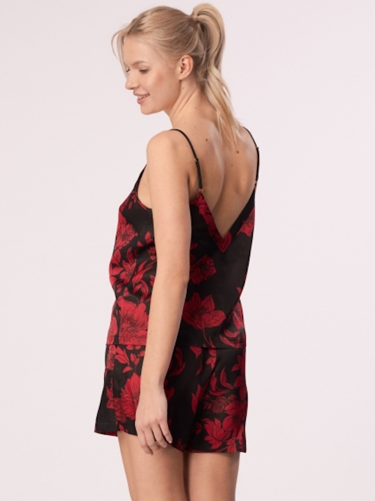 Чёрно-Красный S, M, L, XL Комплект Rosalia топ на тонких, регулируемых по длине, бретелях, на груди вытачки, на спинке V-образный вырез. Шорты на эластичной резинке, с карманами, пояс декорирован бантом из атласной ленты с кистями. Отлично сочетается с халатом Rosalia. вискоза 100%
