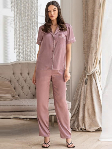 Серый_жемчуг M Комплект рубашка и брюки Mia-Mella с короткими рукавами выполнен из искусственного шелкового полотна с атласным блеском. 100% полиэстер