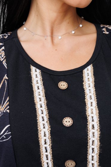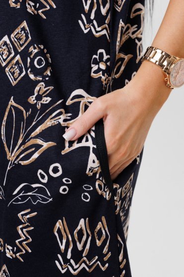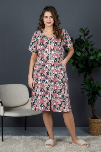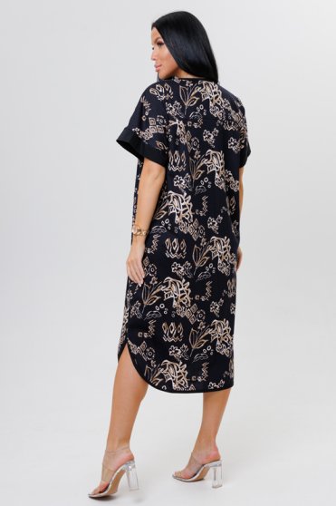 Оптовая продажа. Туника женская из трикотажного полотна кулирная гладь с флористическим рисунком, прямая, свободного кроя, с короткими цельнокроеными рукавами на манжетах, фигурной линией низа, боковыми разрезами, декоративной вставкой по переду. Изделия из натурального хлопка подходят для чувствительной кожи, летнего и зимнего периода, они дышащие и легкие.
