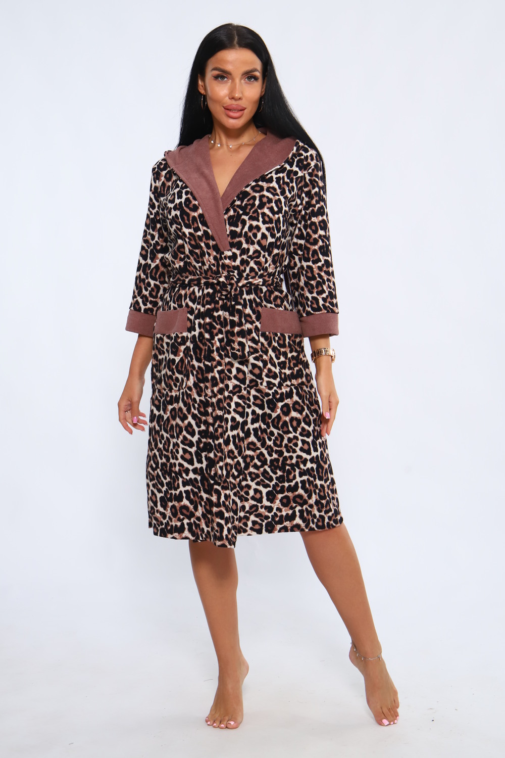 Халат женский из махры в приятном цвете. Халат с капюшоном и карманами. Халат на запах с поясом. Выполнен с тканью компаньон. Комфортный, средней длины.
