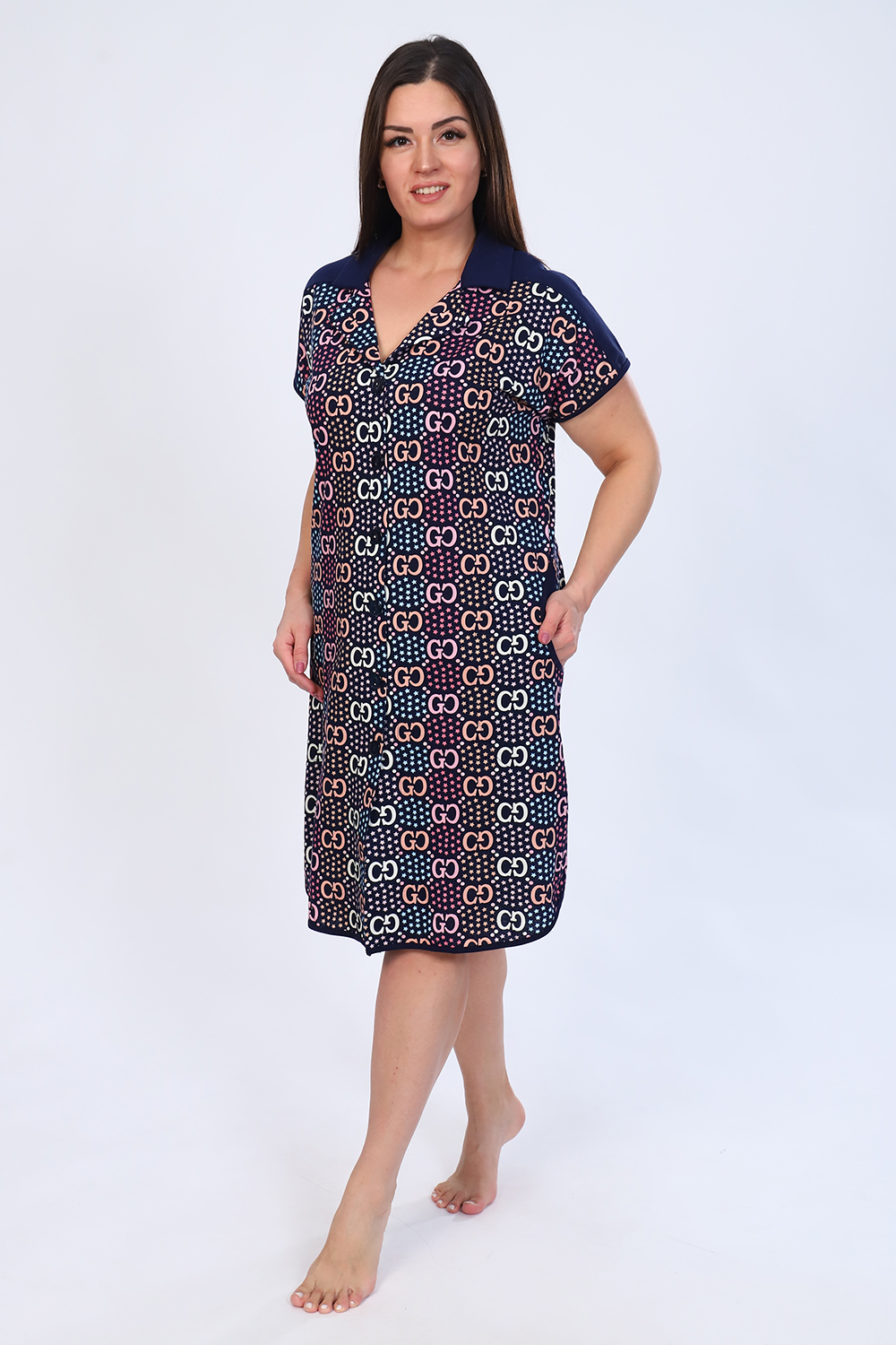 Халат-рубашка на пуговицах с коротким рукавом. В боковых швах глубокие карманы. Халат на пуговицах станет вашей любимой одеждой для дома и отдыха. В меру свободная модель трикотажного халата подойдет беременным и кормящим мамам, пуговицы, в отличие от молнии можно расстегнуть в нужных местах, что так важно при грудном вскармливании. Яркая расцветка халата на пуговицах будет к лицу как девочке-подростку, так и женщине с любым размером одежды Цвет: темно-зеленый; Материал: кулирка;кулирка; Состав: хлопок 100%.