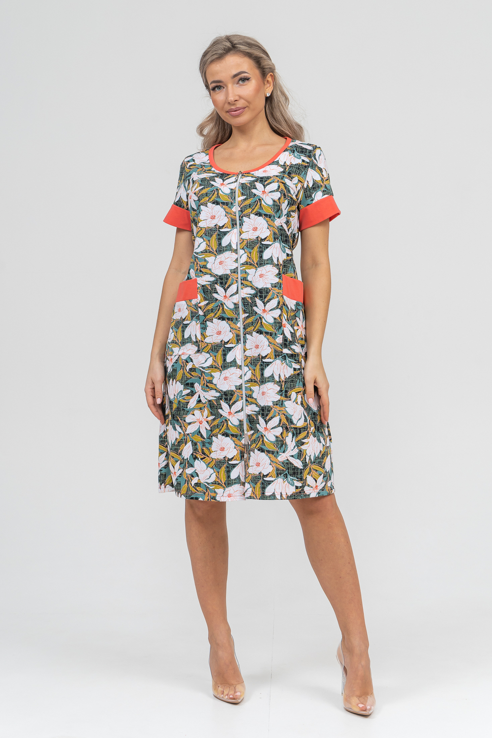 Женский халатик на молнии самая распространенная и универсальная одежда для домашнего отдыха и хозяйственных хлопот. После трудного рабочего дня, приходя домой, первым делом хочется переодеться. И данная модель это идеальный вариант среди представительниц прекрасной половины человечества. Модель выполнена из 100% хлопчатобумажной ткани. Халат так же дополняет яркая отделка по рукавам и карманам. А пояс на линии талии поможет легко смоделировать женственный силуэт и при этом Вы будете чувствовать себя легко и непринуждённо. Данная модель прекрасно подойдёт для дома, дачи и отдыха, создавая по-настоящему яркий образ и хорошее настроение! Цвет: синий;зелёный; Материал: кулирка;кулирка; Состав: 100% хлопок.