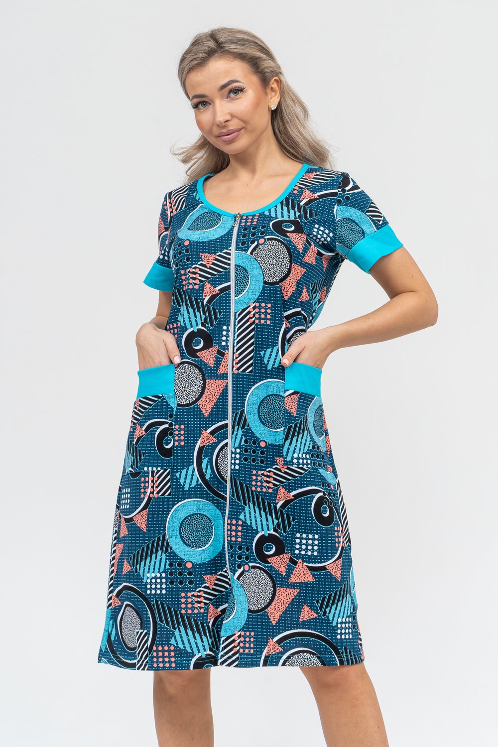 Женский халатик на молнии самая распространенная и универсальная одежда для домашнего отдыха и хозяйственных хлопот. После трудного рабочего дня, приходя домой, первым делом хочется переодеться. И данная модель это идеальный вариант среди представительниц прекрасной половины человечества. Модель выполнена из 100% хлопчатобумажной ткани. Халат так же дополняет яркая отделка по рукавам и карманам. А пояс на линии талии поможет легко смоделировать женственный силуэт и при этом Вы будете чувствовать себя легко и непринуждённо. Данная модель прекрасно подойдёт для дома, дачи и отдыха, создавая по-настоящему яркий образ и хорошее настроение! Цвет: бирюза; Материал: кулирка;кулирка; Состав: 100% хлопок.