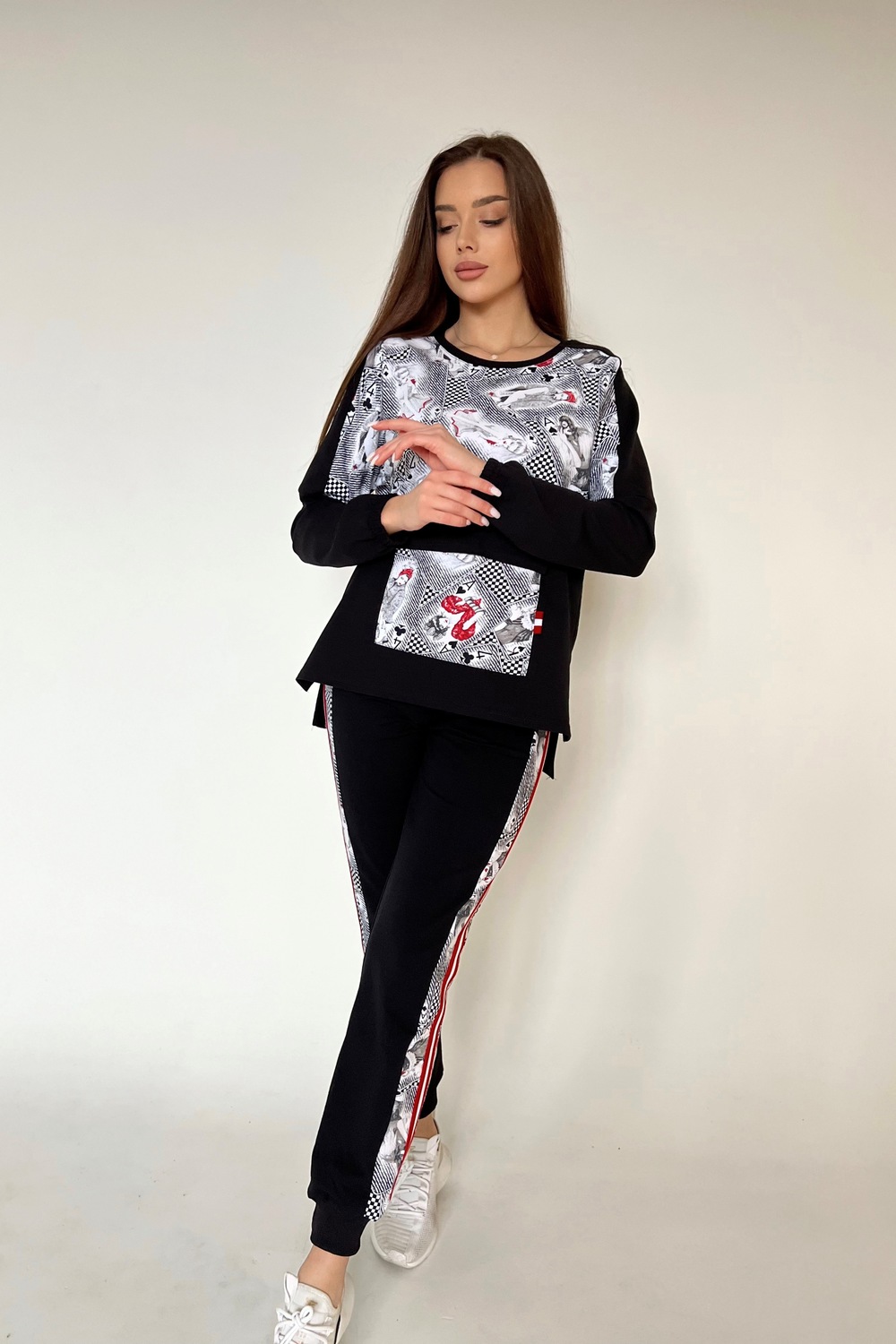 Костюм хороший, трикотаж довольно плотный, на 44-46, взяла 46 размер, все отлично подошло.