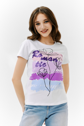 Костюм женский с бриджами из вискозы, рукав короткий, туника с карманами, горловина обработана эластичной кружевной тесьмой. Цвет: горох+цветы; Материал: кулирка;вискоза;кулирка;вискоза; Состав: хлопок 100%, вискоза 92%, лайкра 8%.