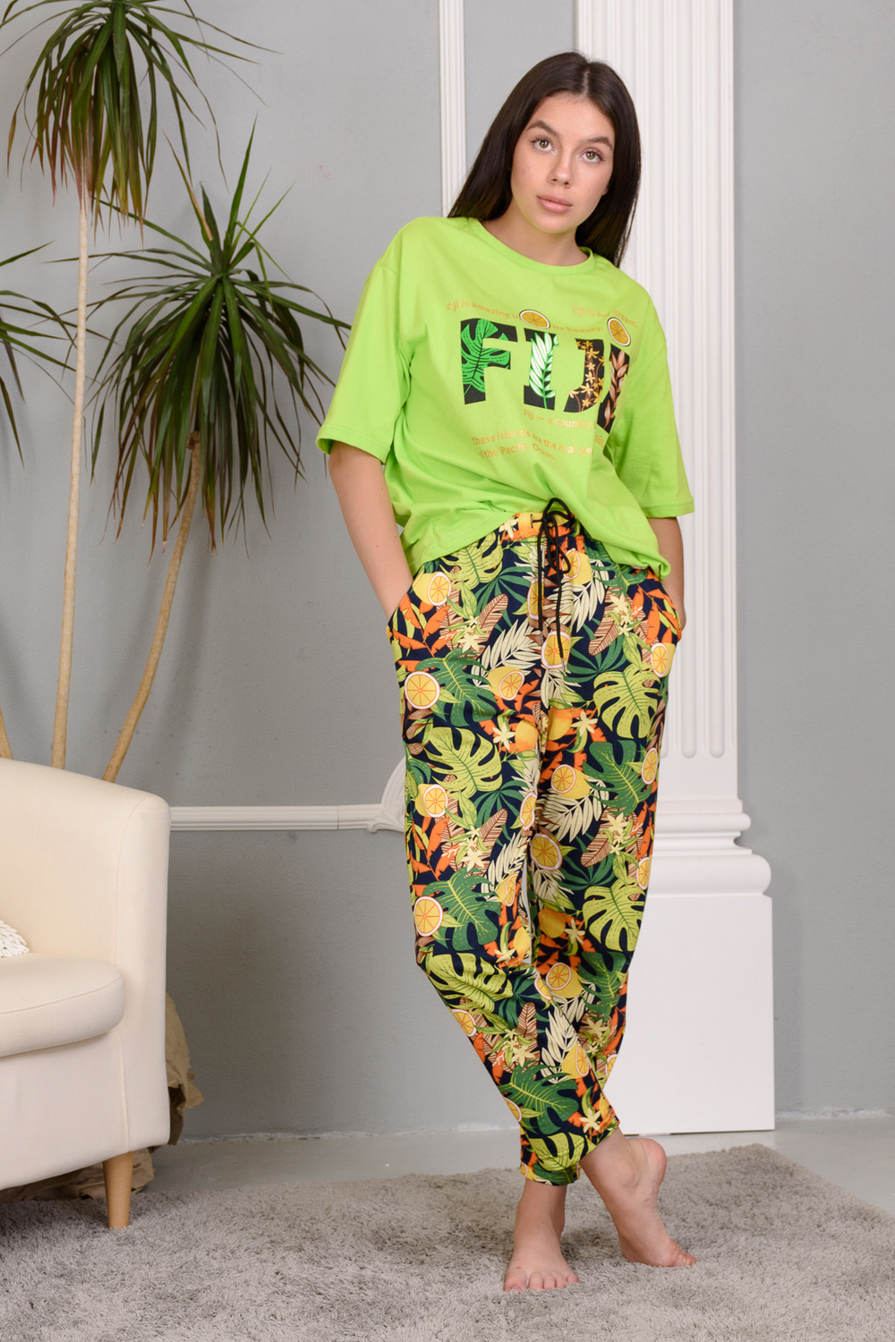 Костюм в стиле оверсайз - "лёгкая небрежность". Этот стиль уже не сдаёт позиции несколько сезонов. В этом костюме привлекает всё: свобода кроя, современный принт, непринуждённость и комфорт, который так важен в повседневной жизни. Спущенная линия плеча. Этот костюм подчёркивает женственность, при этом позволяет скрыть некоторые недостатки фигуры и подчеркнуть достоинства. Верх брюк обработан удобной широкой резинкой, которая не скручивается после стирки, а шнурком можно регулировать размер талии.