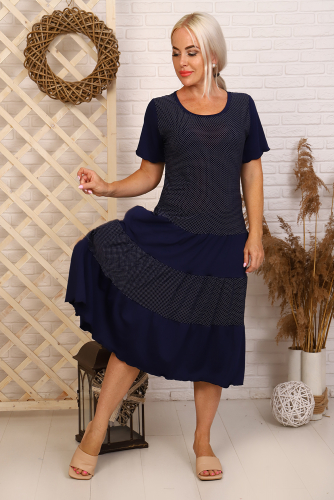 Платье женское из ткани кулирка 100% хлопок. Платье со спущенным рукавом, кокетка однотонная. Отделка на планке натуральным кружевом с двумя пуговицами "кокос". Низ расклешен, платье удлиненное. Для повседневной носки, дома и отдыха. Сохраняет цвет и форму после стирки. Фасон очень комфортный