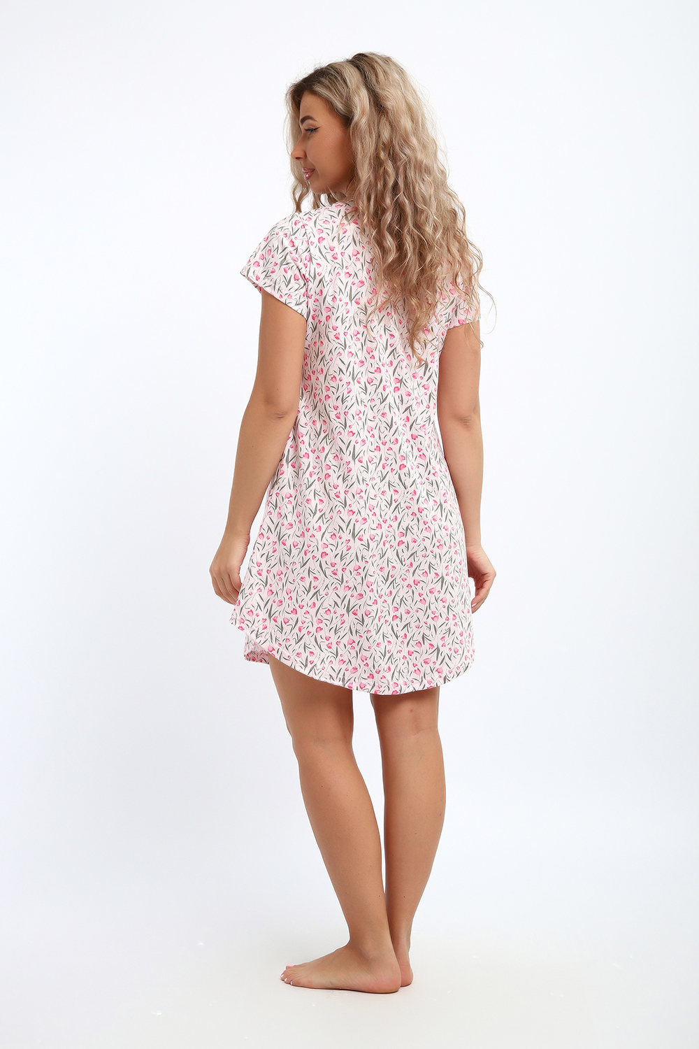 Сорочка маечного фасона с коротким рукавом и закругленным подолом. Подходит для сна и отдыха. Цвет: розовый; Материал: кулирка;кулирка; Состав: хлопок 100%.