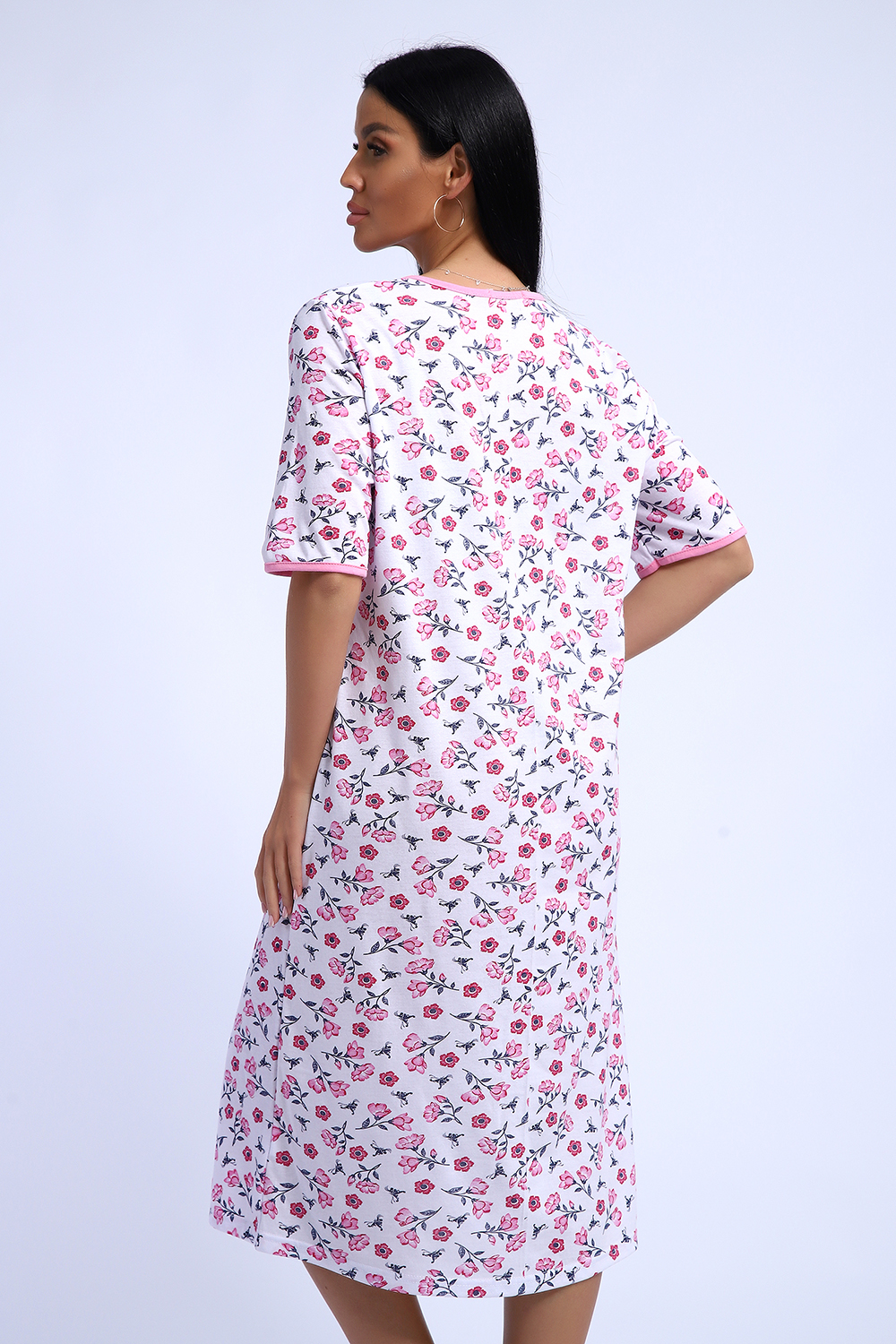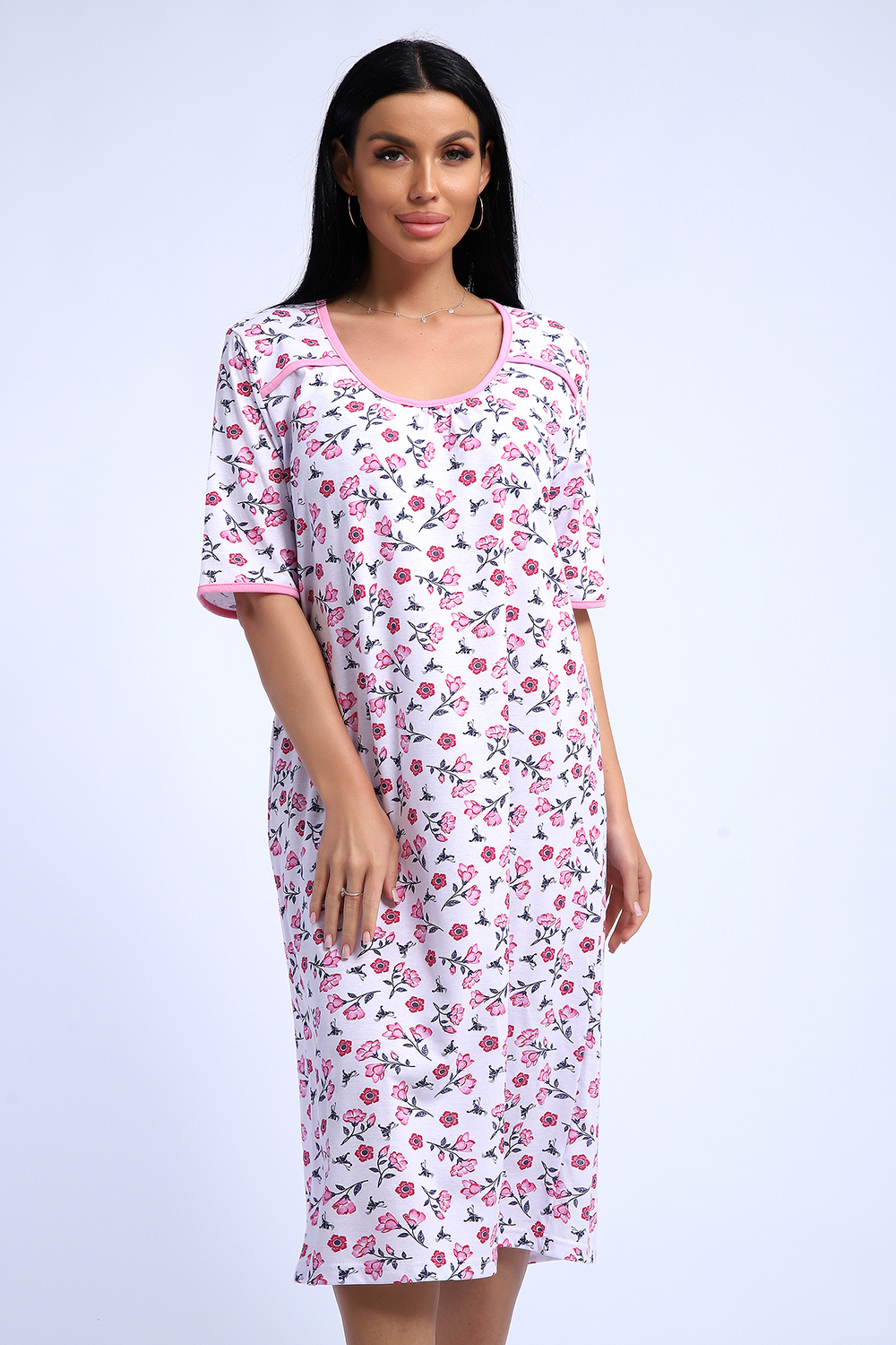 Сорочка из белоземельной хлопковой кулирки с нежным цветочным рисунком, рукава до локтя. Цвет: розовый; Материал: кулирка;кулирка; Состав: 100% хлопок.