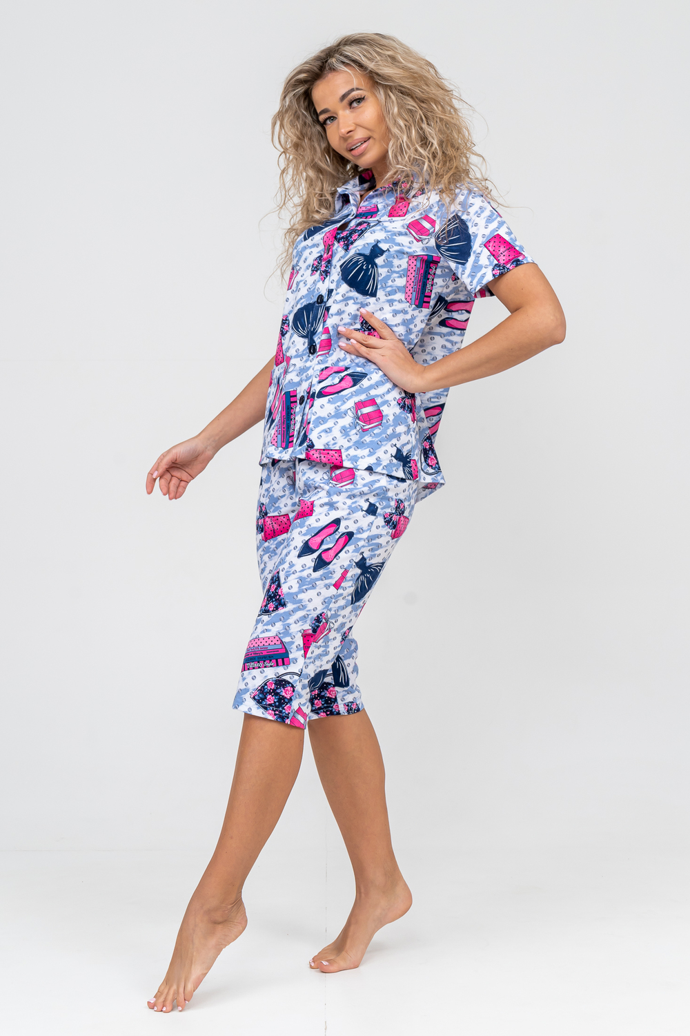 Женская пижама - это идеальная одежда свободного покроя для дома. Состоит из 100% хлопка, не скатывается и сохраняет форму и цвет после множества стирок. Наша модная пижама с бриджами отлично подходит как белье для сна, повседневной носки или фотосессии. Набор двойка выполнен из верха рубашечного плана с воротником, планкой на пуговицах, двумя накладными карманами и бриджами на резинке. Лето, Весна, Осень, Зима - каждый день будет окутан уютом. Удобный трикотажный пижамный костюм предоставит вам крепкий комфортный сон и молодежный стильный вид. Если предпочитаете оверсайз (oversize), то возьмите на размер больше. Наша домашняя одежда прекрасно смотрится на стройных и на полных, на высоких и на миниатюрных. Также данный костюм с бриджами подойдет и для беременных на ранних сроках. Вы можете заказать стильный и приятный новогодний подарок в виде пижамы: жене, для мамы, дочки, девушки, девочки подростка, любимой, для сестры, подруги или бабушки. Вы можете сделать сюрприз на любой праздник: на Новый Год, Рождество, 8 марта, День Святого Валентина, День Матери, День Рождения. И будьте уверены, что она станет вашим любимым элементом гардероба!