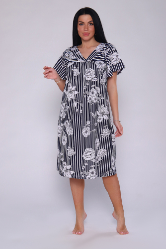 Сорочка женская из кулирного полотна, состав 100% хлопок. Горловина сорочки с отделкой из кружева, рукава обработаны окантовкой, низ сорочки обработан декоративной строчкой. Легкая в уходе.