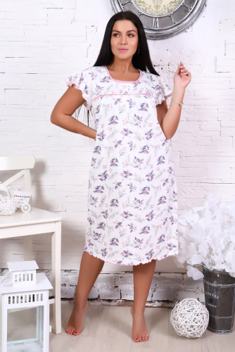 Молодежная сорочка из кулирки на бретельках, кружевная отделка, декоративный бантик. Две расцветки голубая и розовая.