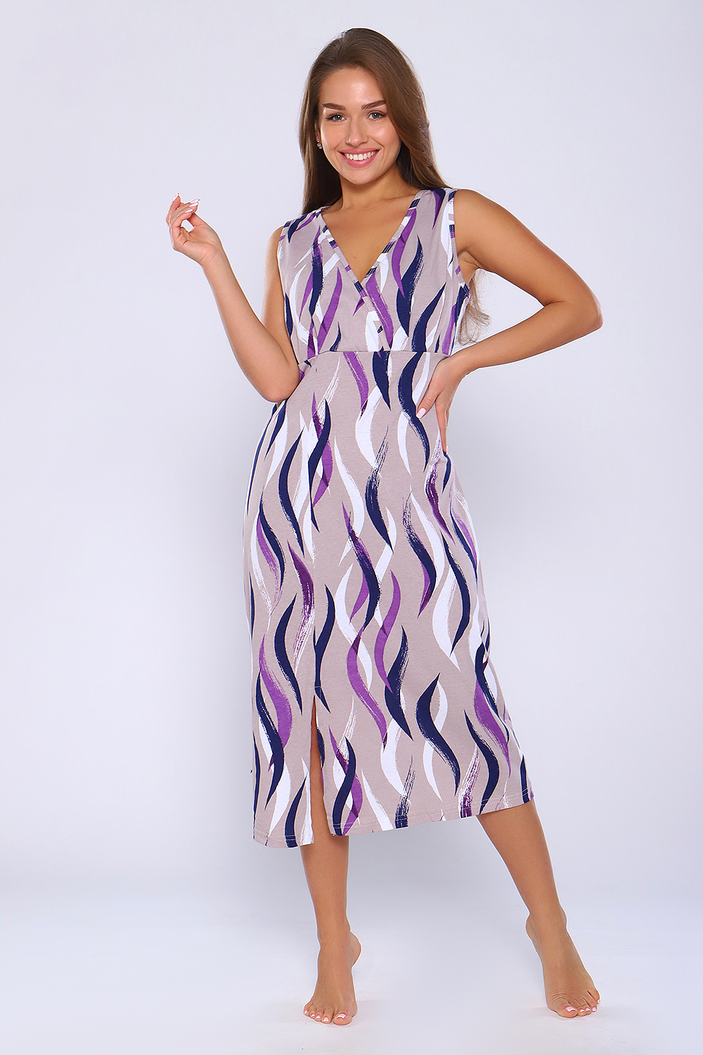 Сорочка полуприлегающего силуэта. Отрезной лиф на запах со складками. Спереди асимметричный разрез справа. Комфортна для повседневной носки и сна.