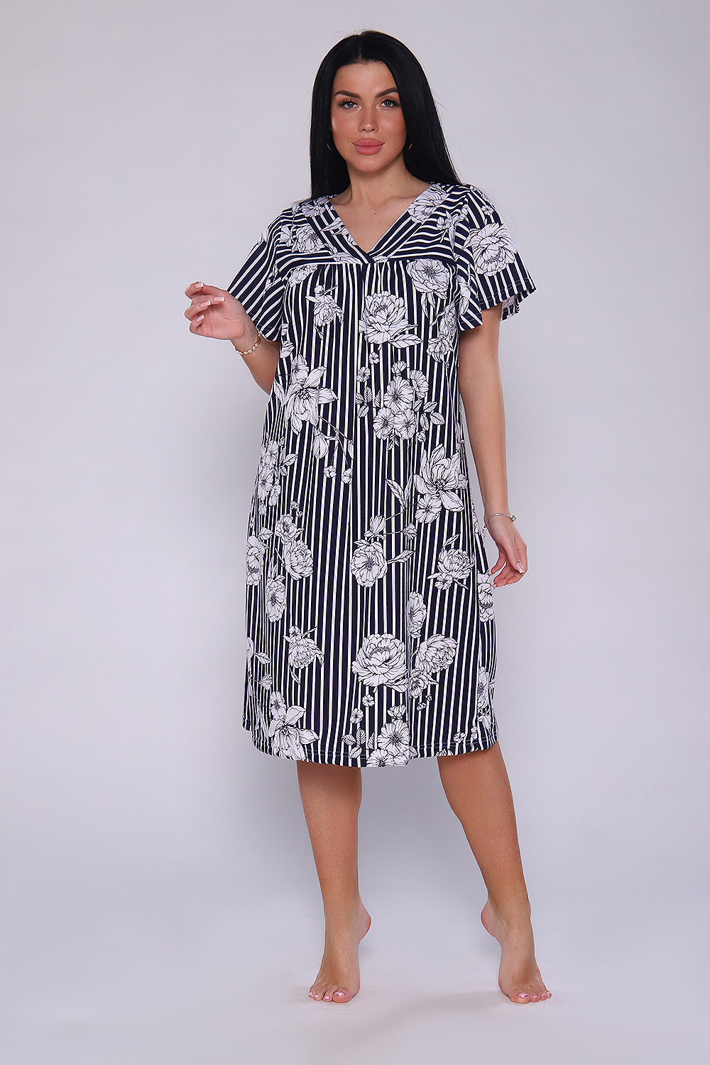 Сорочка свободного кроя с короткими рукавами - крылышками. Вырез горловины V - образный. Над грудью сборка. Комфортна для повседневной носки и сна.