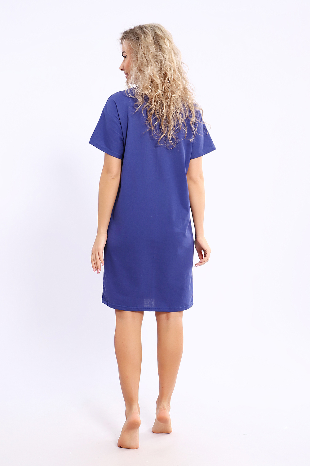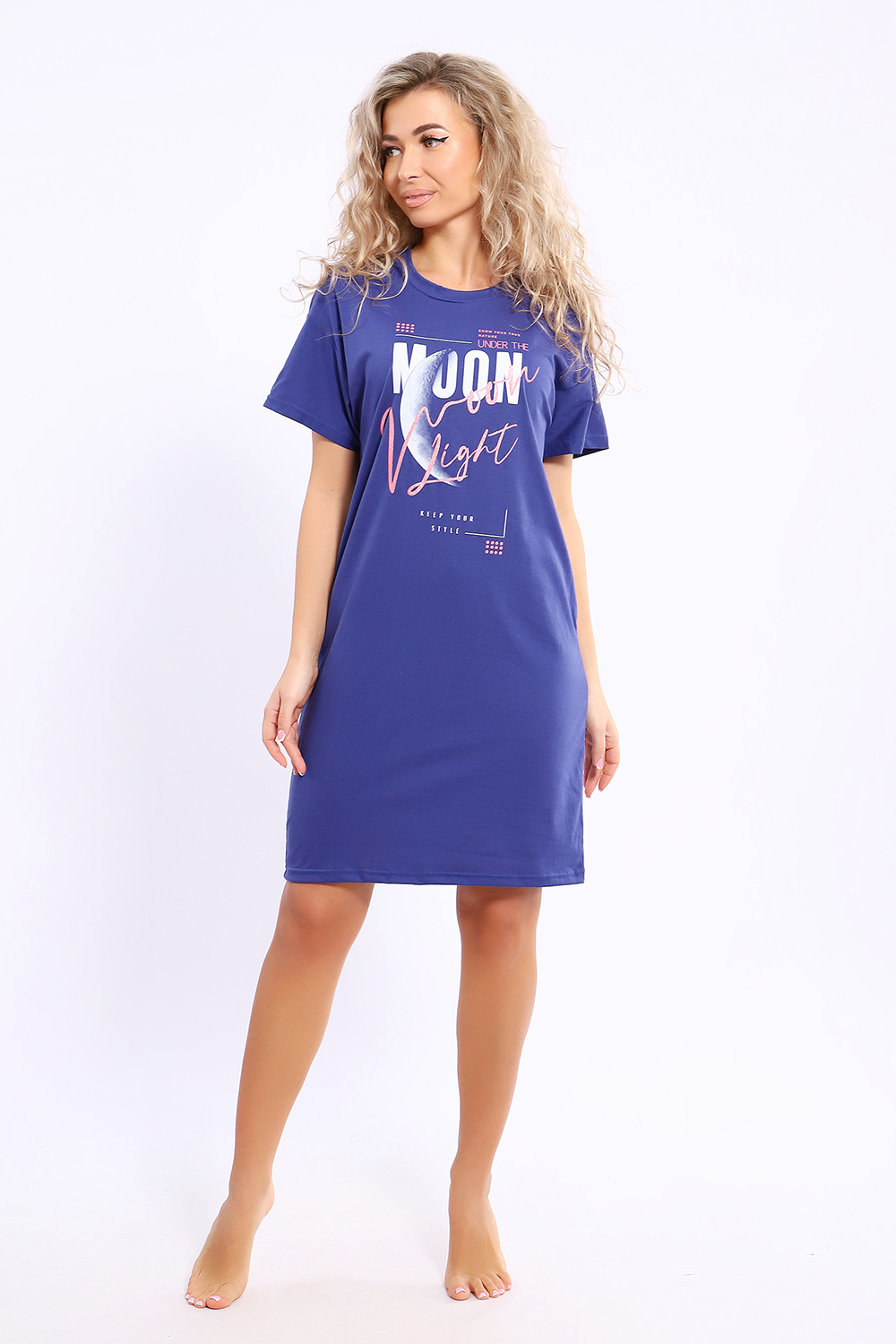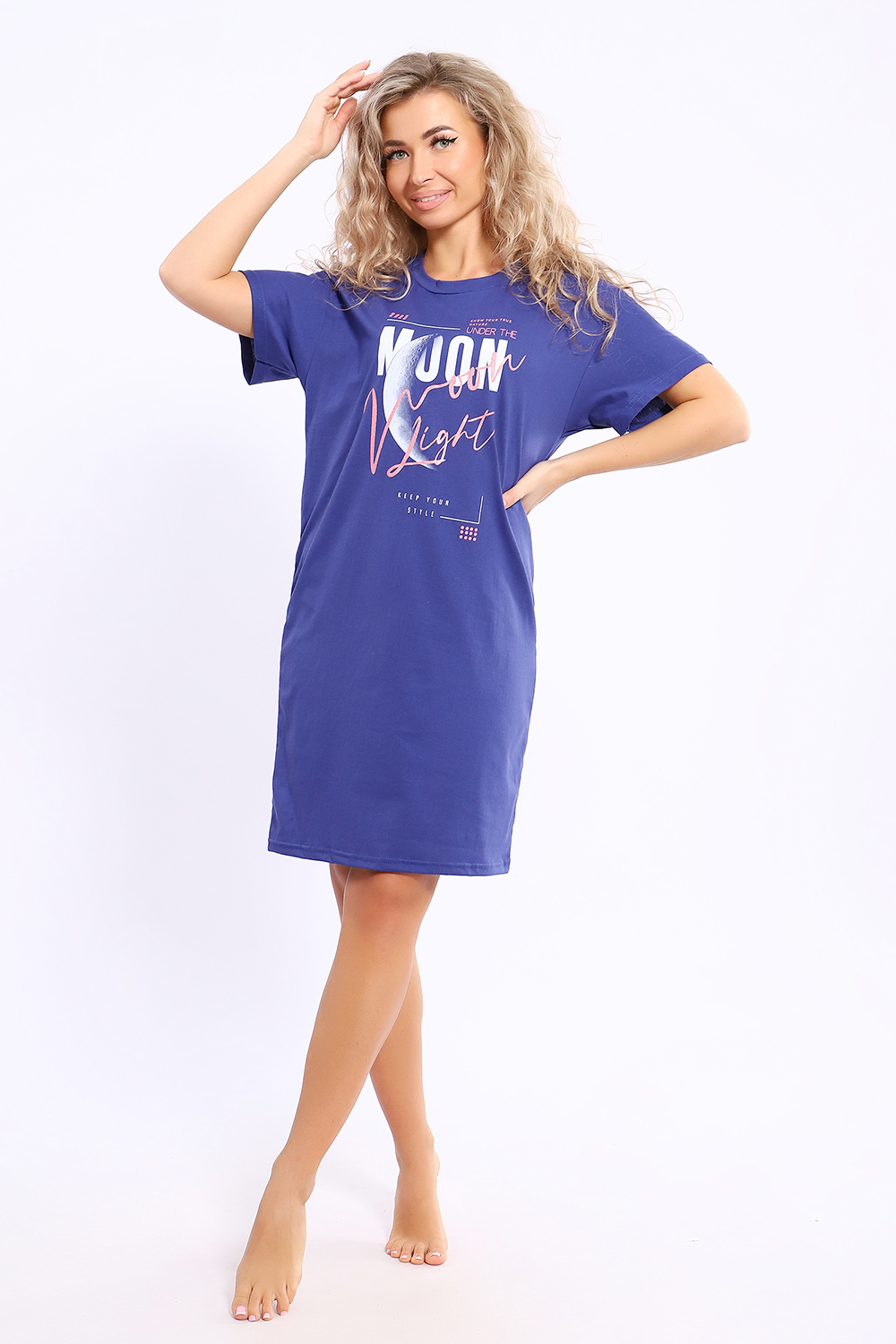 Туника с романтическим принтом. Длиной до колена,без карманов, рукава короткие на базе спущенного плеча. Цвет: синий; Материал: кулирка;кулирка; Состав: 100% хлопок.