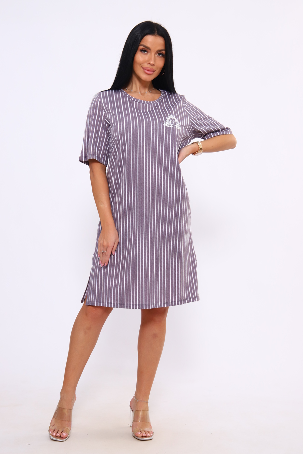 Сорочка для дома и отдыха из хлопка. Свободный силуэт с разрезами по бокам и декоративной, глянцевой печатью в стиле шелкографии.