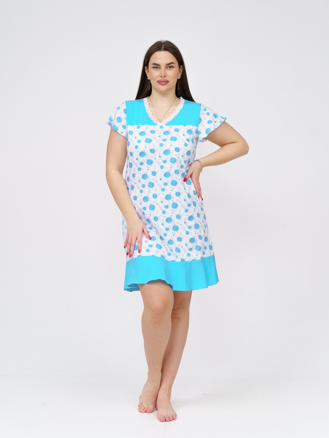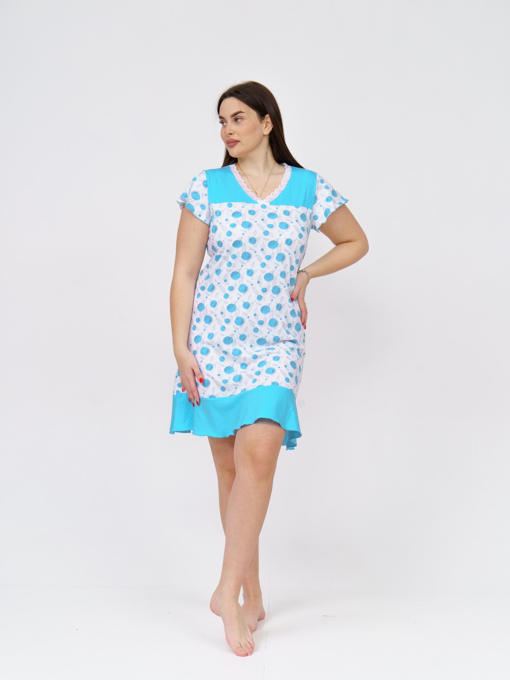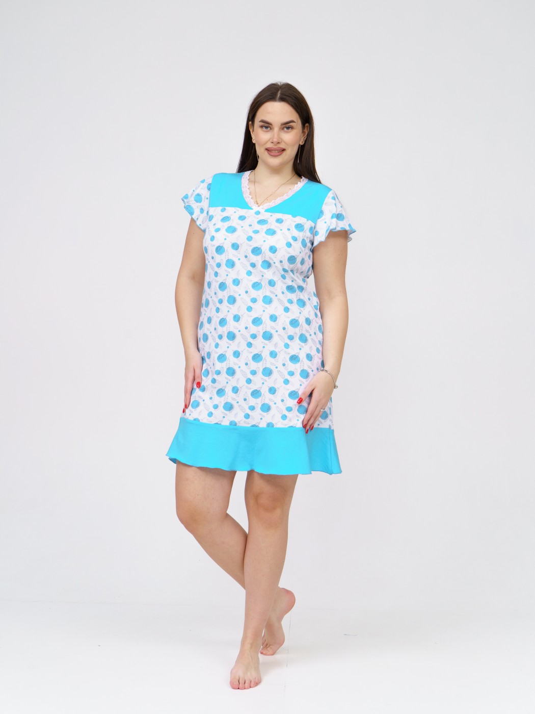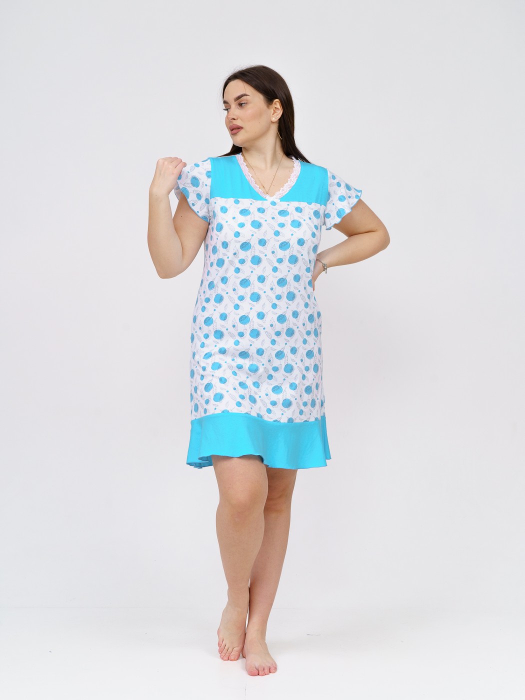Ночная сорочка Астра Крыло белый/бирюза горох