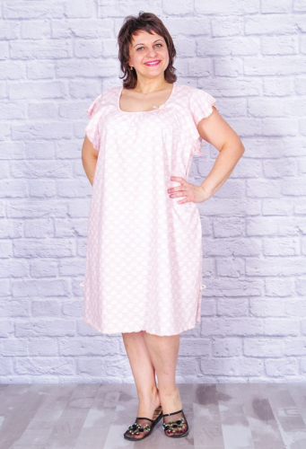 Ночная хлопковая сорочка с рукавом "крылышко". Модель прямого фасона, комфортной длины. Ткань - кулирка с набивным рисунком.