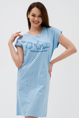 Ночная сорочка из кулирки Котик голубой