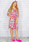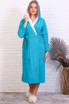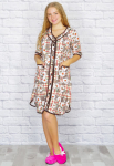 Оригинальный женский халатик на молнии, с удобными боковыми карманами, по низу изделия декоративная оборка. Халат выполнен из трикотажного кулирного полотна со 100% содержанием хлопка.