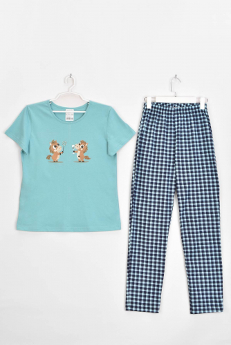 Ткань: Кулирка (Хлопок 100%) ЛЮБОЙ,Е 103Ф бирюза_лошадки