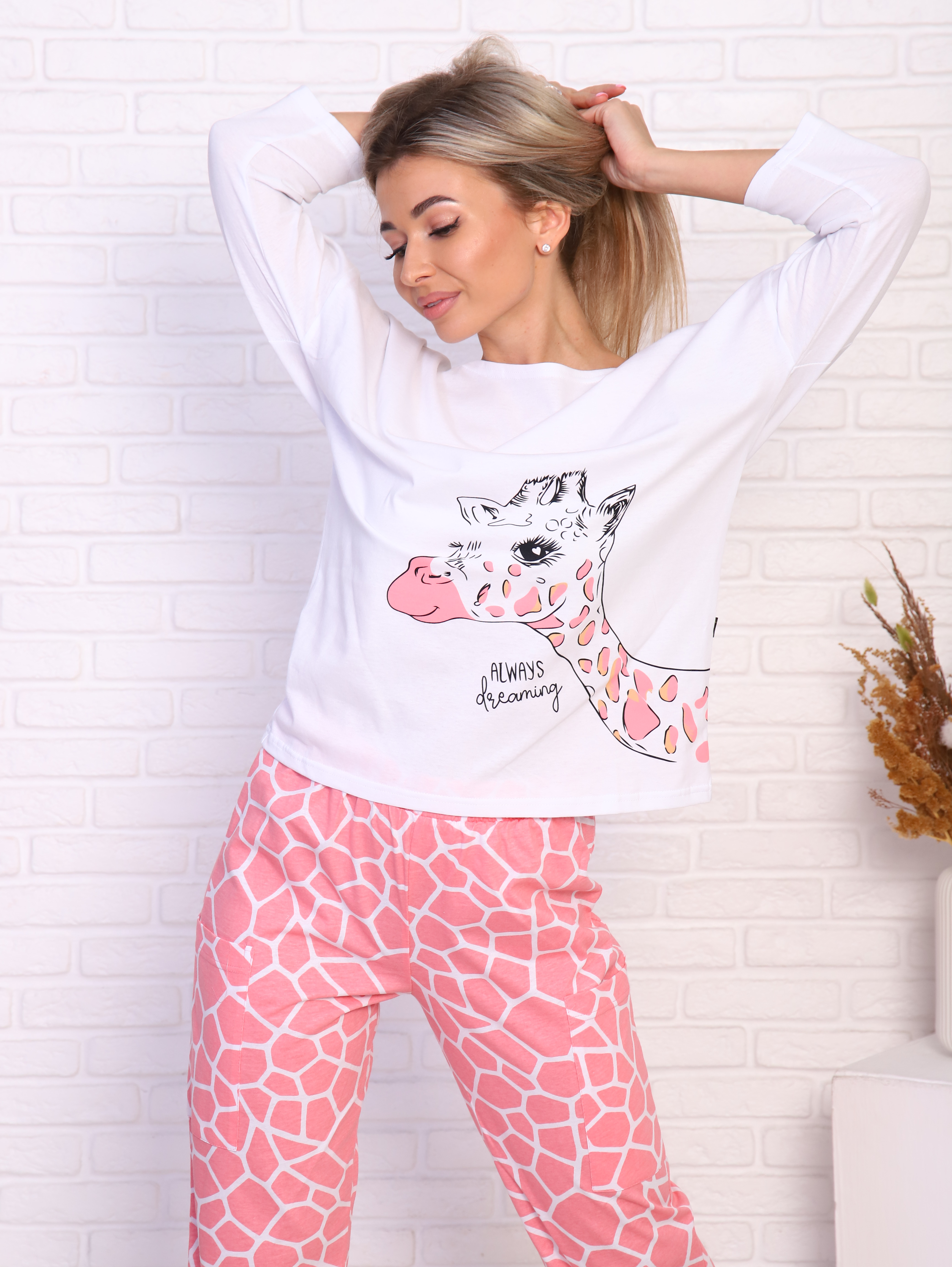 Женский домашний костюм "Фауна" выполнен из натуральной хлопковой ткани. Белая футболка с втачными рукавами длиной 3/4, полочка украшена оригинальным принтом. Брюки с накладными карманами, пояс и низ изделия на резинке. Мягкая приятная ткань и свободный крой костюма не сковывают движений во время сна и домашнего отдыха, а яркая оригинальная расцветка радует и создает хорошее настроение.