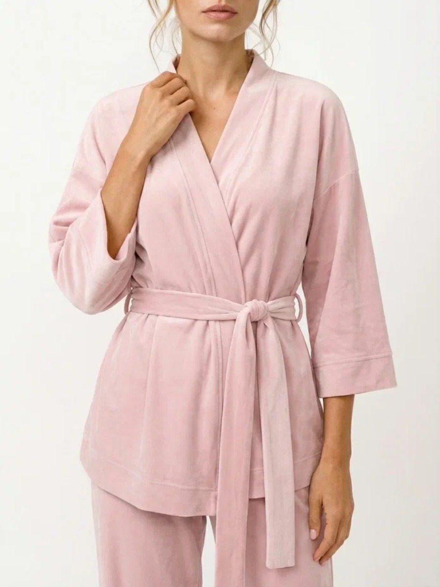 Пижама Кимоно+брюки из велюра OD-836-3 розовый OD-836-3