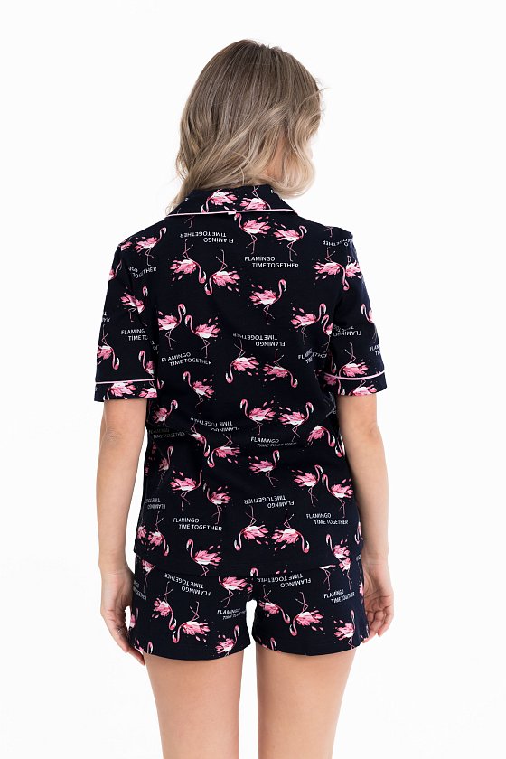 Женская пижама рубашка и шорты выполнена из мягкой и приятной на ощупь ткани — кулирки (100% хлопок). Этот материал обеспечивает хорошую воздухопроницаемость и комфорт во время сна. Пижамная рубашка застёгивается на пуговицы и имеет отложной воротник, что придаёт изделию аккуратный и стильный вид. Рукава рубашки короткие, а слева расположен нагрудный карман, что удобно для хранения мелочей. Шорты короткие, с боковыми карманами и поясом на резинке, что обеспечивает комфортную посадку и свободу движений. Такая пижама идеально подойдёт для отдыха и сна, обеспечивая максимальный комфорт и уют.