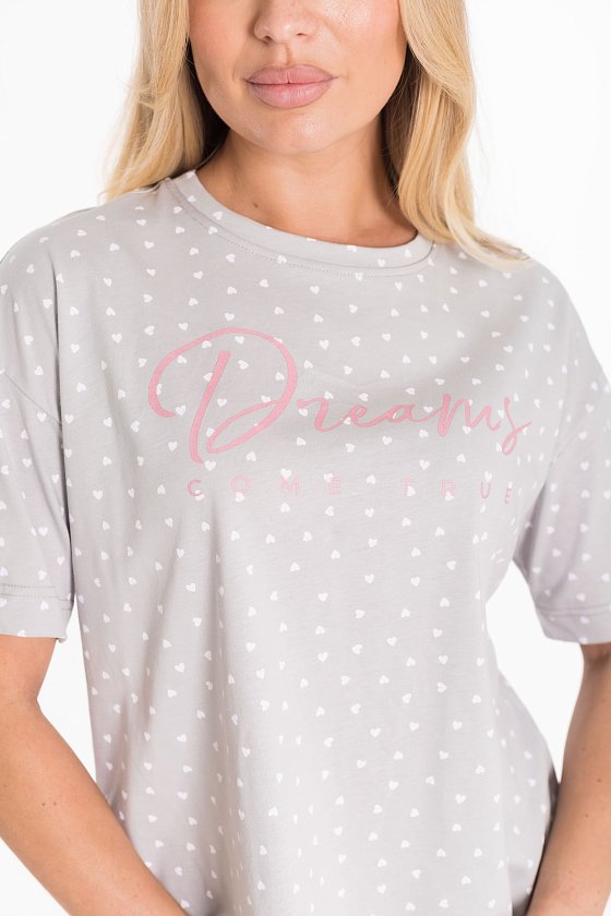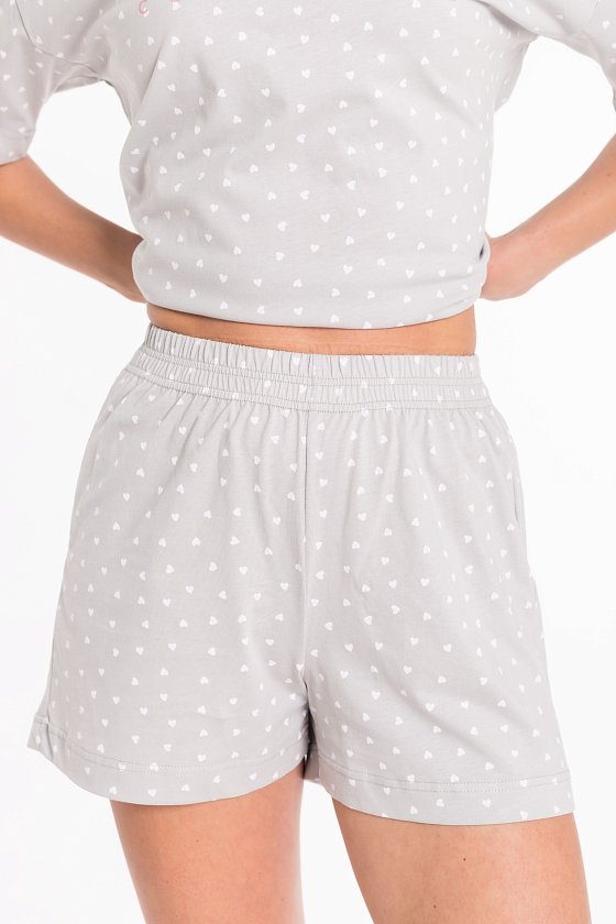 Женская пижама включает в себя футболку и шорты, выполненные из кулирки. Футболка прямого кроя со спущенным коротким рукавом, принтом и круглым вырезом горловины обеспечивает комфорт и свободу движений. Мягкое и приятное на ощупь полотно будет нежно ложиться на тело, создавая ощущение комфорта и уюта. Шорты короткие, с поясом на широкой резинке, обеспечивают идеальную посадку и удобство. Такой дизайн позволяет свободно двигаться и чувствовать себя комфортно даже во время сна.