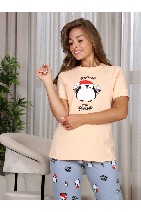 Футболка с коротким рукавом и декорирована принтом: пингвин и надпись "Счастье это просто"