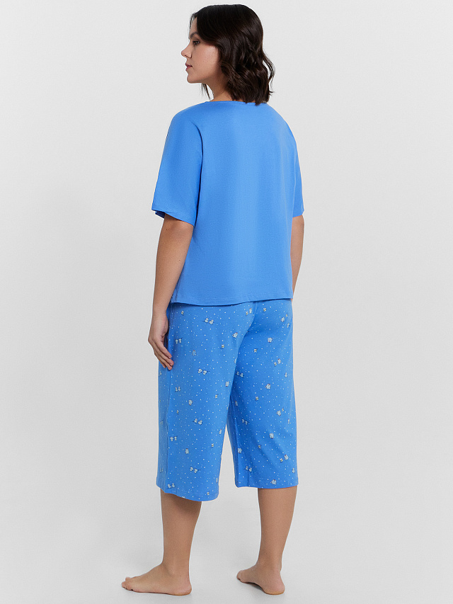Очаровательная женская пижама с бриджами и джемпером из высококачественного мягкого хлопка –– отличный вариант для сна и отдыха, дарящий уют и тепло. Мягкий, эластичный хлопковый материал гипоаллергенен и подходит для самой нежной кожи. Эта пижама создаст яркий, стильный и неповторимый образ, в котором вы будете выглядеть потрясающе в домашней обстановке. Удобный крой и деликатные швы изделия обеспечат полную свободу движений и комфорт. В линейке представлено много интересных расцветок, широкийразмерный ряд и актуальные модели plus-size. Подарите радость своим любимым и близким с подарками от Mark Formelle!