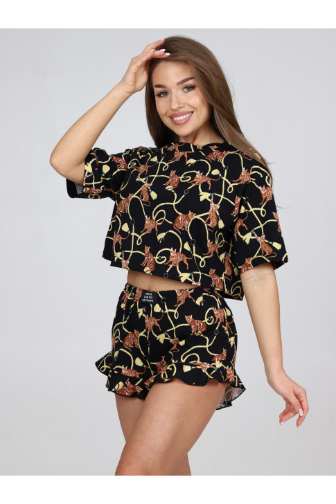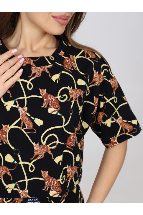 Пижама женская П-124.03 Кошки черный