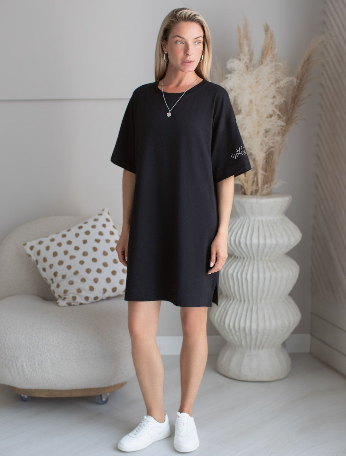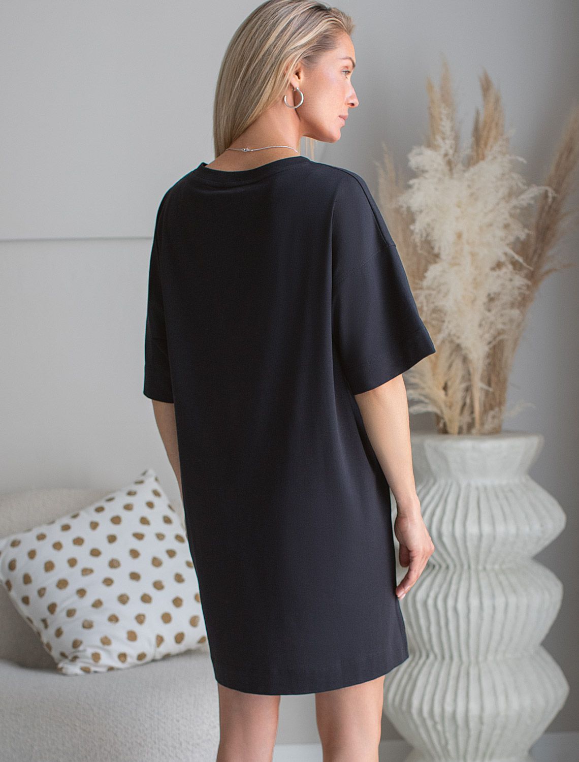 Платье из премиального хлопка с вышивкой на рукаве D42.090 черный