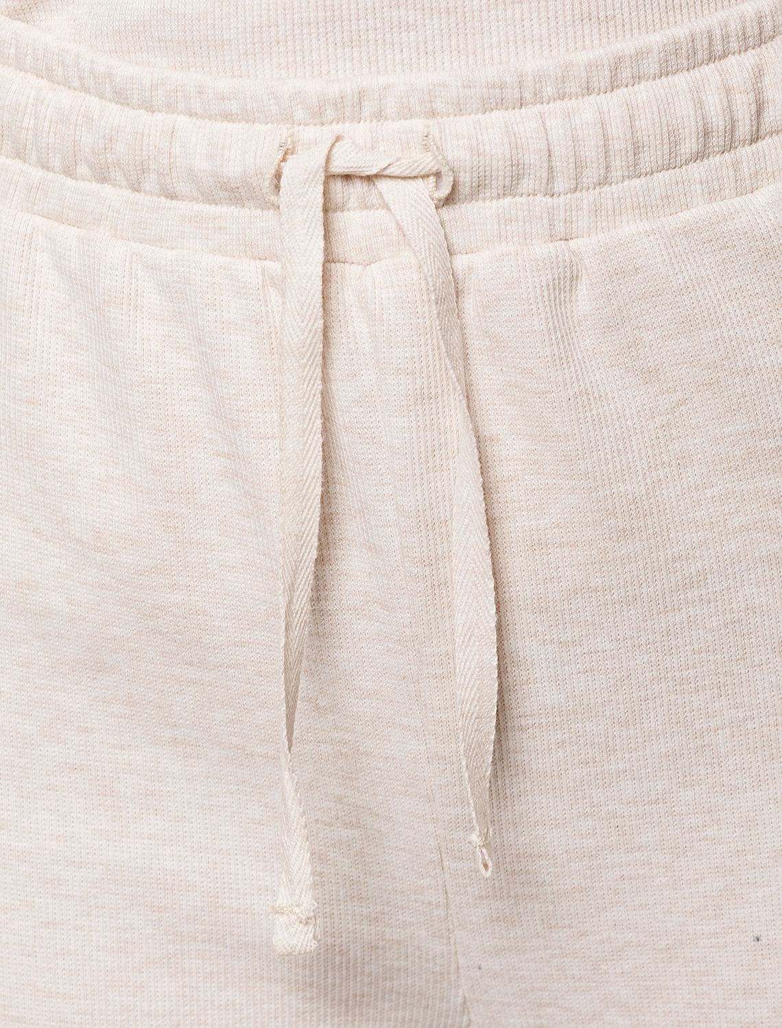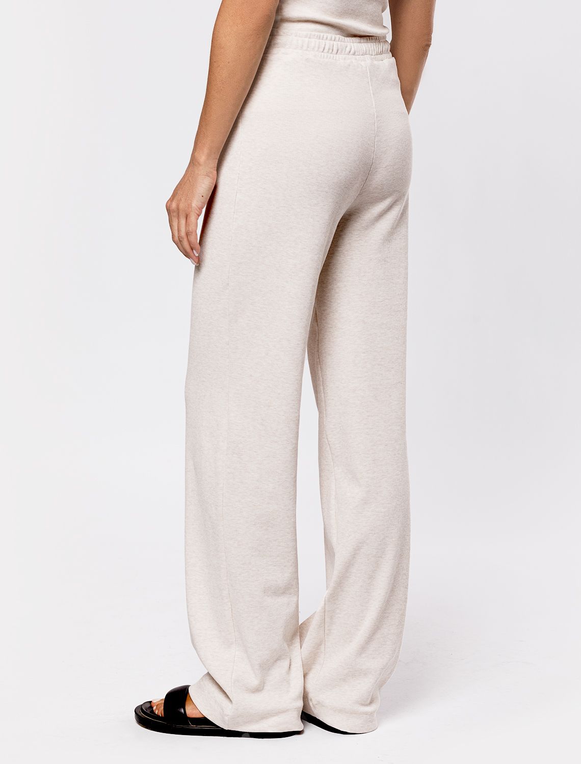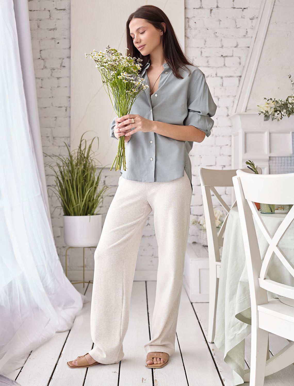 Прямые брюки из фактурного трикотажа в рубчик D44.121 бежевый меланж