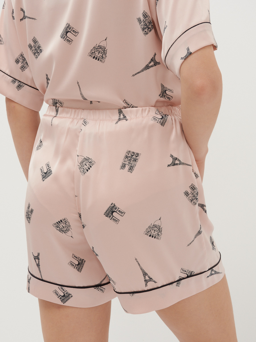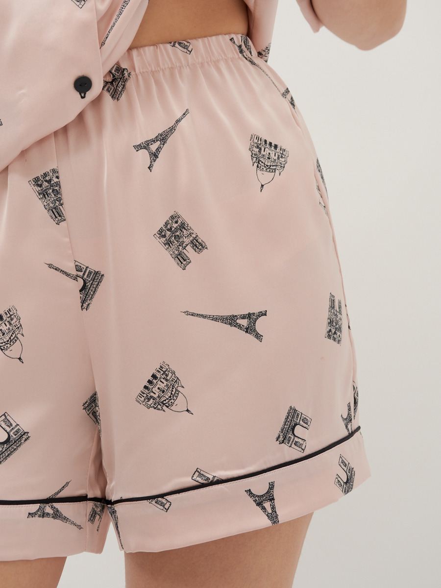 Представляем вашему вниманию женские прямые шорты из изысканного армани-шелка, которые станут жемчужиной летнего ассортимента вашего бутика. Эта модель сочетает в себе безупречное качество пошива и последние тренды, предлагая вашим клиентам не только стиль, но и исключительный комфорт.Ключевые особенности модели:Премиальная ткань: Армани-шелк обеспечивает роскошный внешний вид, невероятную мягкость и приятные тактильные ощущения, а также легкость в уходе. Ткань не мнется и прекрасно держит форму, что ценят современные покупатели.Актуальный дизайн: Прямой крой с высокой посадкой и эластичным поясом на талии гарантирует идеальную посадку по фигуре и свободу движений. Оригинальный принт с узнаваемыми европейскими символами путешествий добавляет изюминку, привлекая внимание к витрине и повышая продажи.Детали, которые продают: Декоративный кант по низу изделия подчеркивает элегантность и продуманность каждой детали, характерную для изделий нашего полного цикла производства.Комфорт и универсальность: Свободный, легкий крой способствует расслаблению и удобству в течение всего дня, при этом шорты выглядят очень элегантно и подходят как для повседневных, так и для более торжественных летних образов.Инвестируйте в модели, которые легко продаются и формируют лояльность клиентов. Мы, как российский производитель TANTINO, гарантируем полный цикл производства и строгий контроль качества на каждом этапе, обеспечивая идеальные лекала и безупречное исполнение.