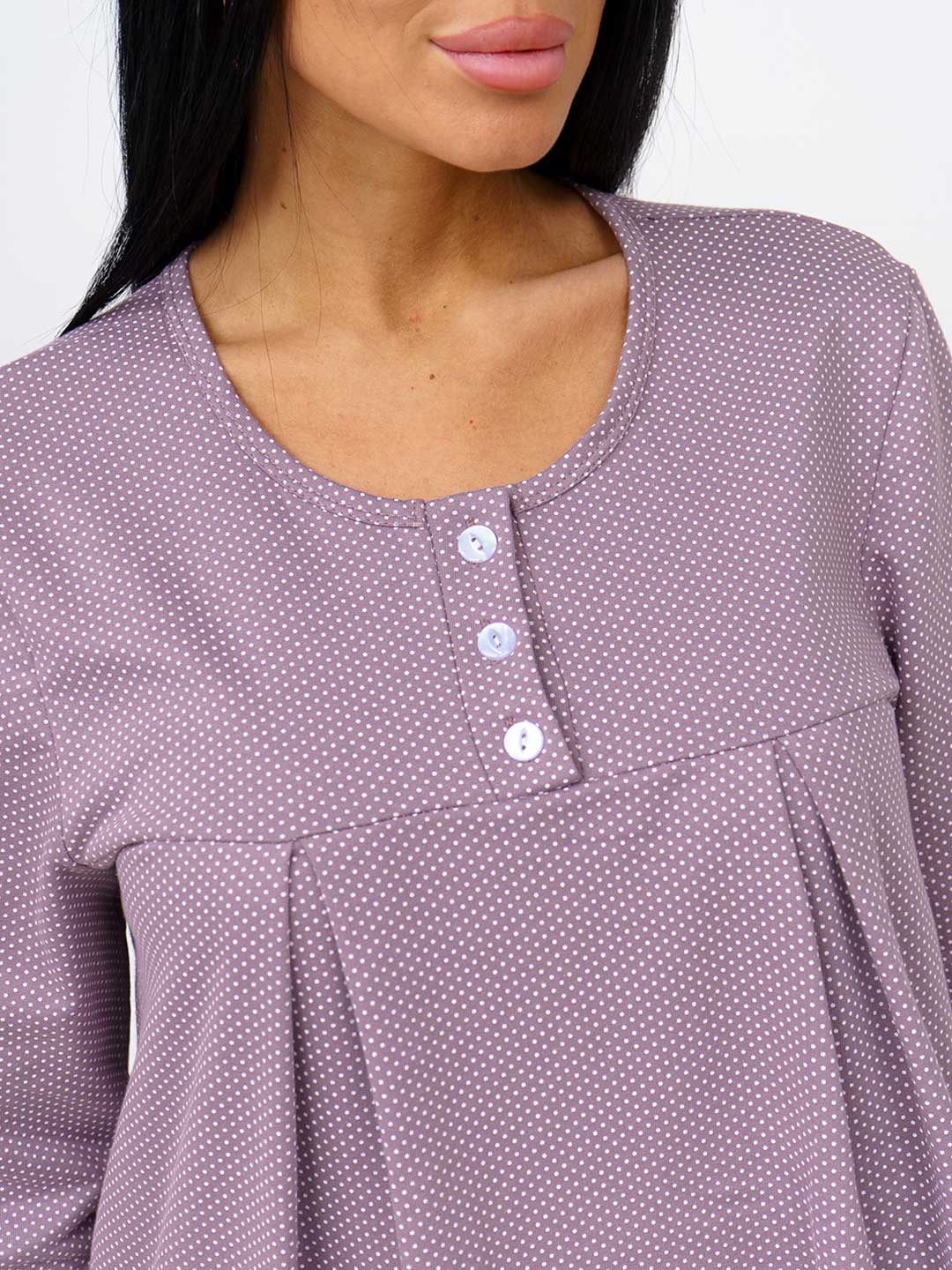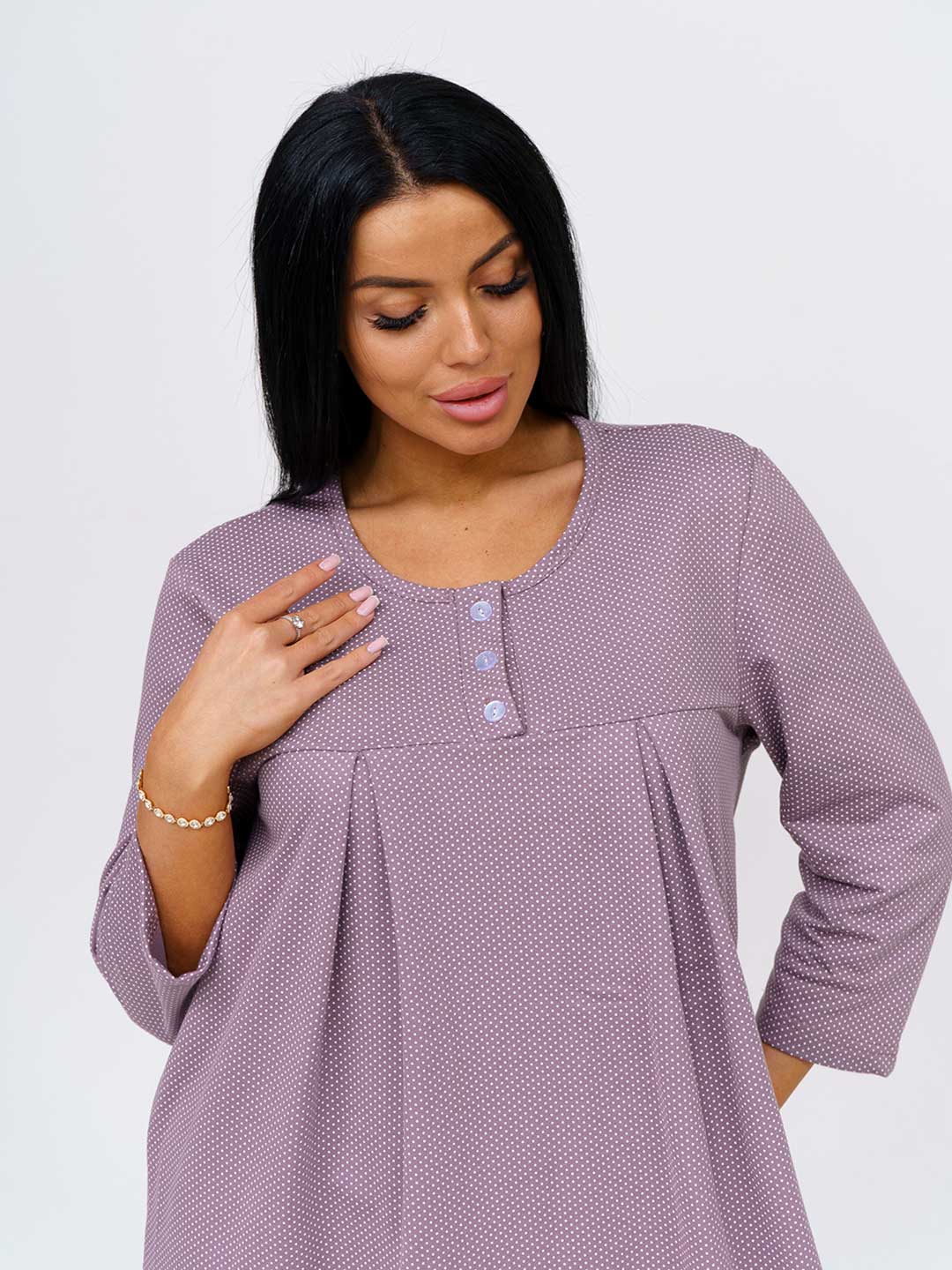 Ночная женская сорочка из футера с начесом, свободного силуэта, длиной ниже колена. Вырез горловины О-образный.