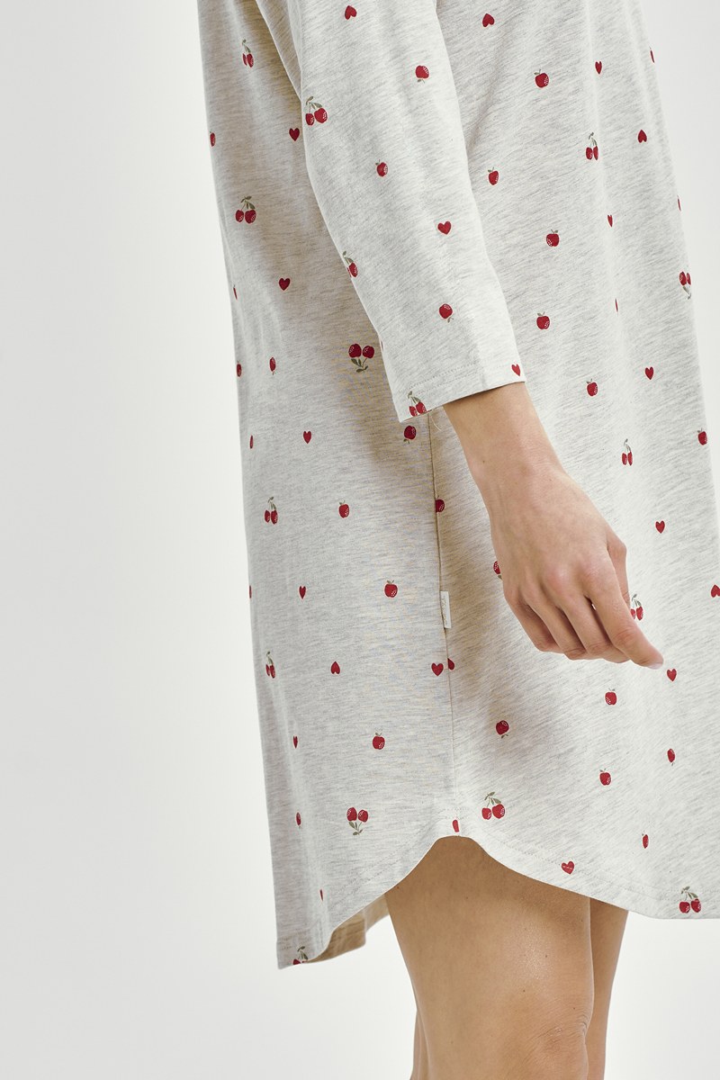 Сорочка женская из натурального хлопка. Яркий принт с фруктами. Укороченный рукав до 7/8. Слегка закругленный подол. 98% хлопок/ 2% полиэстер