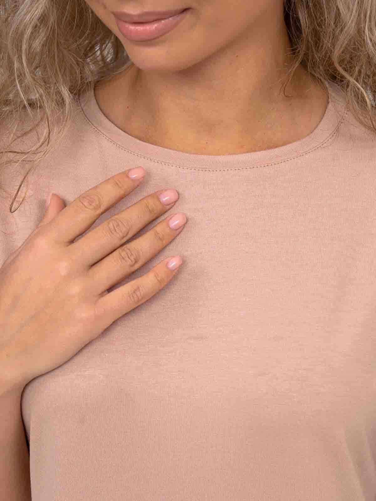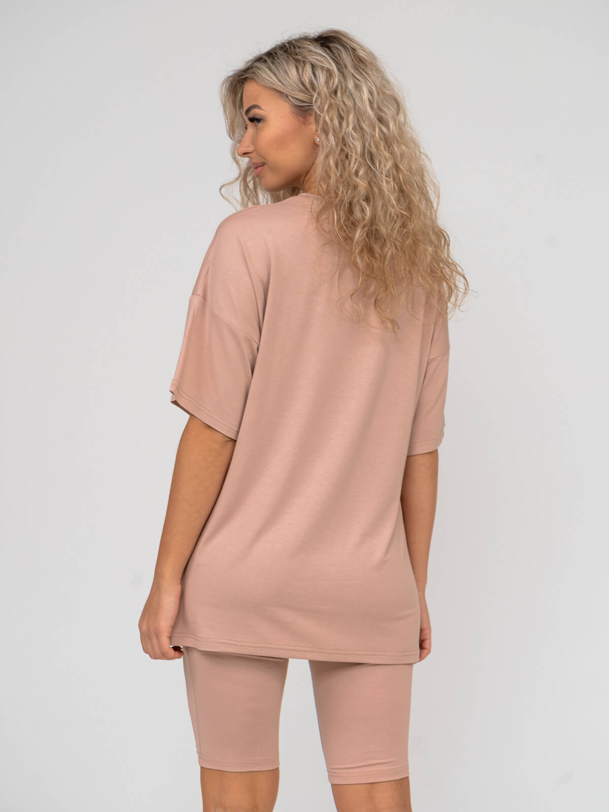 Молодежный костюм из вискозы. Футболка в стиле ОВЕРСАЙЗ с О-образной горловиной, длиной до середины бедра. Велосипедки прилегающей силуэтной формы выше уровня колена.